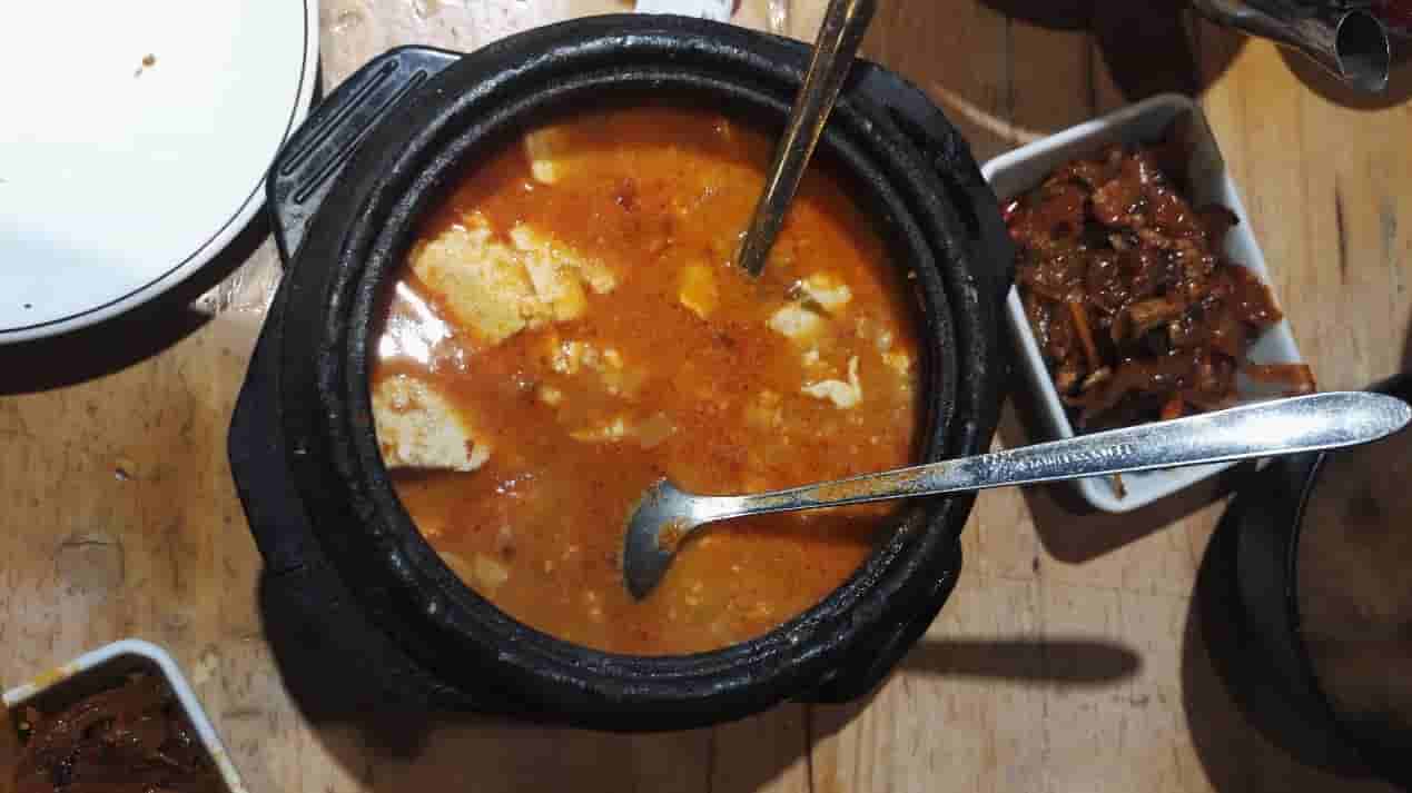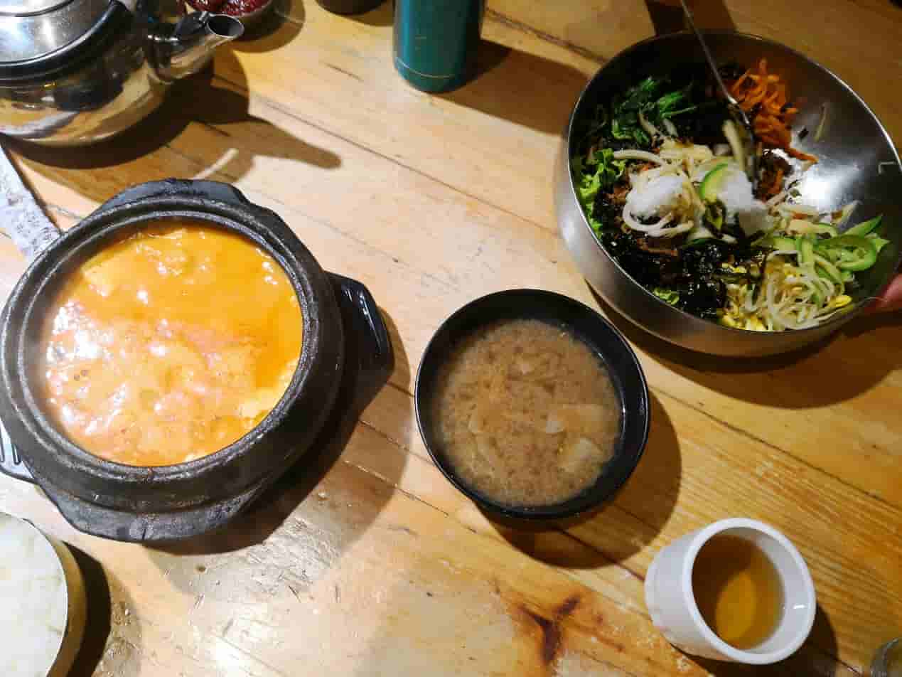 穿梭在延吉市中心,顺便观赏街景,许多新楼拔地而起,而且民族特色鲜明。导航到了预定的优宥酒店,看起来感觉挺好。鲜族人生性爱清洁,屋里屋外都打扫的干净整洁。安顿好后在附近找了家名为"釜山石锅饭"的特色餐馆,好好犒劳下辛苦了一天的自己。