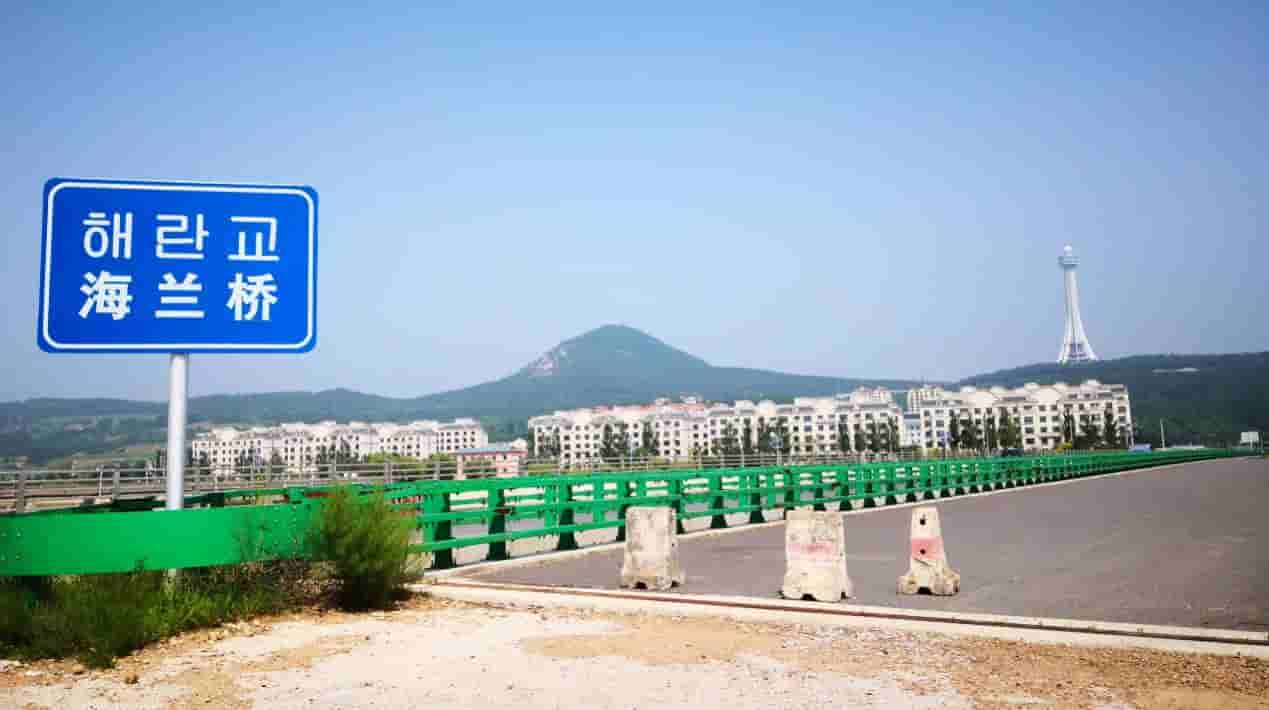 行驶在山间小路上,青山绿树蜿蜒起伏,绿野风光舒爽宜人。边走边观光到达了图们的地界。图们市是延边州下辖县级市,东邻珲春市,东南和朝鲜隔图们江相望,被列为国家甲级边境开放城市。图们交通便利,是珲乌高速公路、长珲高速铁路、东北东部铁路的重要驿站。“图们"是满语河流众多的意思,延边是满族及其祖先肃慎人的发祥地、清朝的"龙兴之地”,高山、河流、地名很多来自于满语。