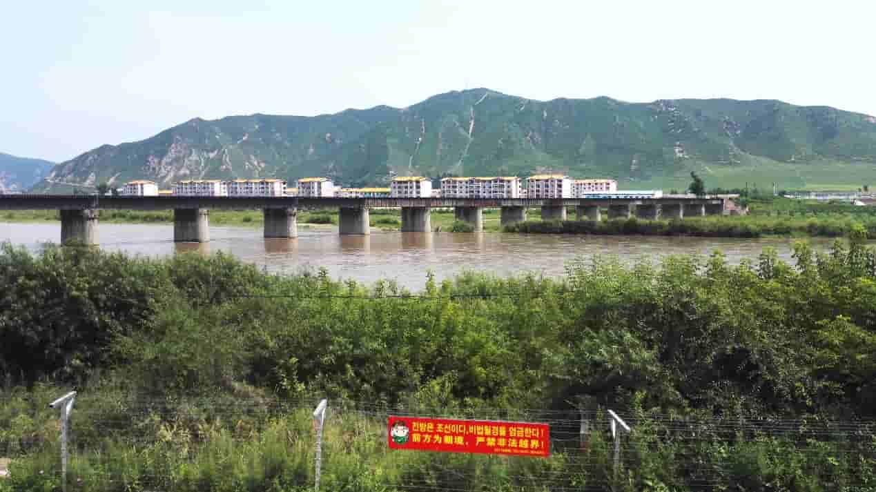 车窗外的青山绿野中再次看到了铁丝网边境线,和中朝边境的宣传挂牌,界河佳境再次展现眼前,开始了沿中朝第二条界河——图们江的旅程。图们江全长520公里,主要支流有嘎呀河和珲春河。图们江仅在入海口附近的一小段是朝鲜和苏联的界河,其余都是中国与朝鲜的界河,图们江是中国通向日本海的唯一水上通道。延边州共有10个对外开放口岸,7处口岸位于图们江上。