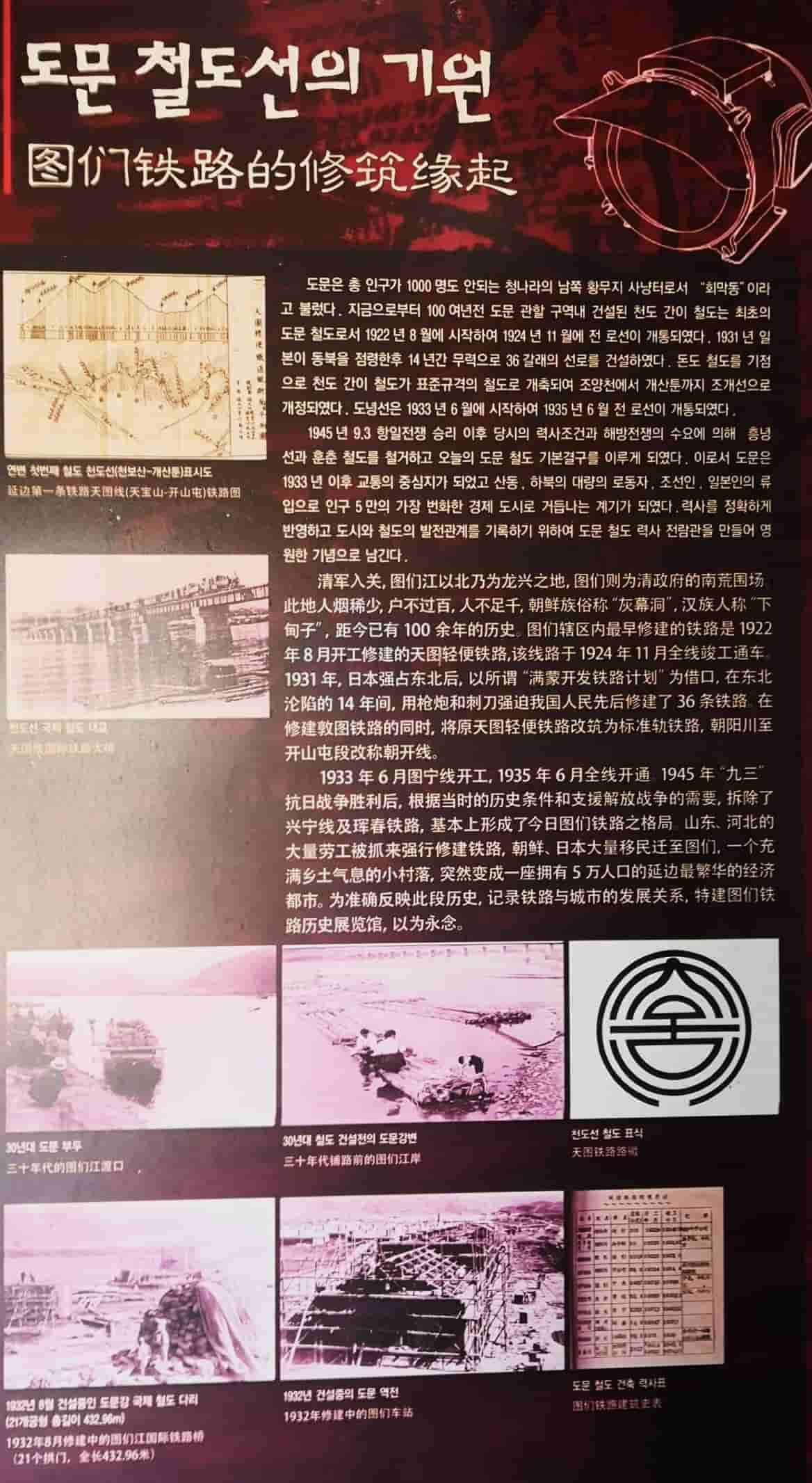 下山后去参观图们铁路历史展览馆,是吉林省唯一的以铁路发展史为主题的展览馆。图们铁路归原图们铁路分局管辖,是联络吉林东部地区的主要交通通道,是中朝铁路国际联运的主要干线,担负着中、朝、日、俄、欧亚大陆桥的国际联运重任,在政治、经济、军事、国防上都有重要的战略地位。小小的展览馆让我们看到了图们铁路的昨天、今天和明天的发展历程。