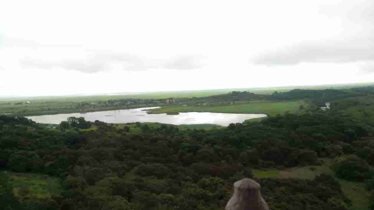 站在望海阁的一瞬,登高远眺的视觉感受让人振奋,遥看远处雾气蒙蒙的日本海连着天际,中朝俄三国的壮观山水景致尽收眼底。正前方是一片湖泊沼泽的濒海平原,绿色树丛之中的白色岗楼,是我们刚才去过的"土字牌"景区,图们江水蜿蜒远去,沿江再向前15公里就是日本海。今天阴云密布视野受限,据说赶上大晴天可以看到碧蓝色的大海。
