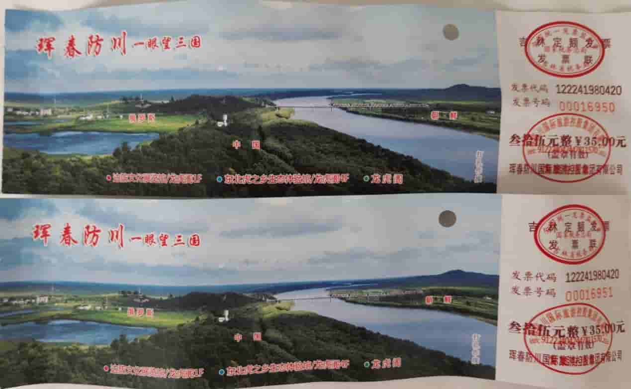 第二天一早,在农家院吃过早餐后我们就去了防川风景区,景区门前已有很多游客,多是慕"一眼望三国"之名而来。中国2.2万公里的陆地边境分别于14个国家接壤,据说有4处同时与两国相连,可称为鸡鸣三国或一眼望三国,其中普通游客最容易看到的就是珲春防川,这里距离日本海仅15公里,还有图们江川流而过的特殊景致。游客进入景区一律须乘坐景区观光车,我们购买门票和观光车票进入。