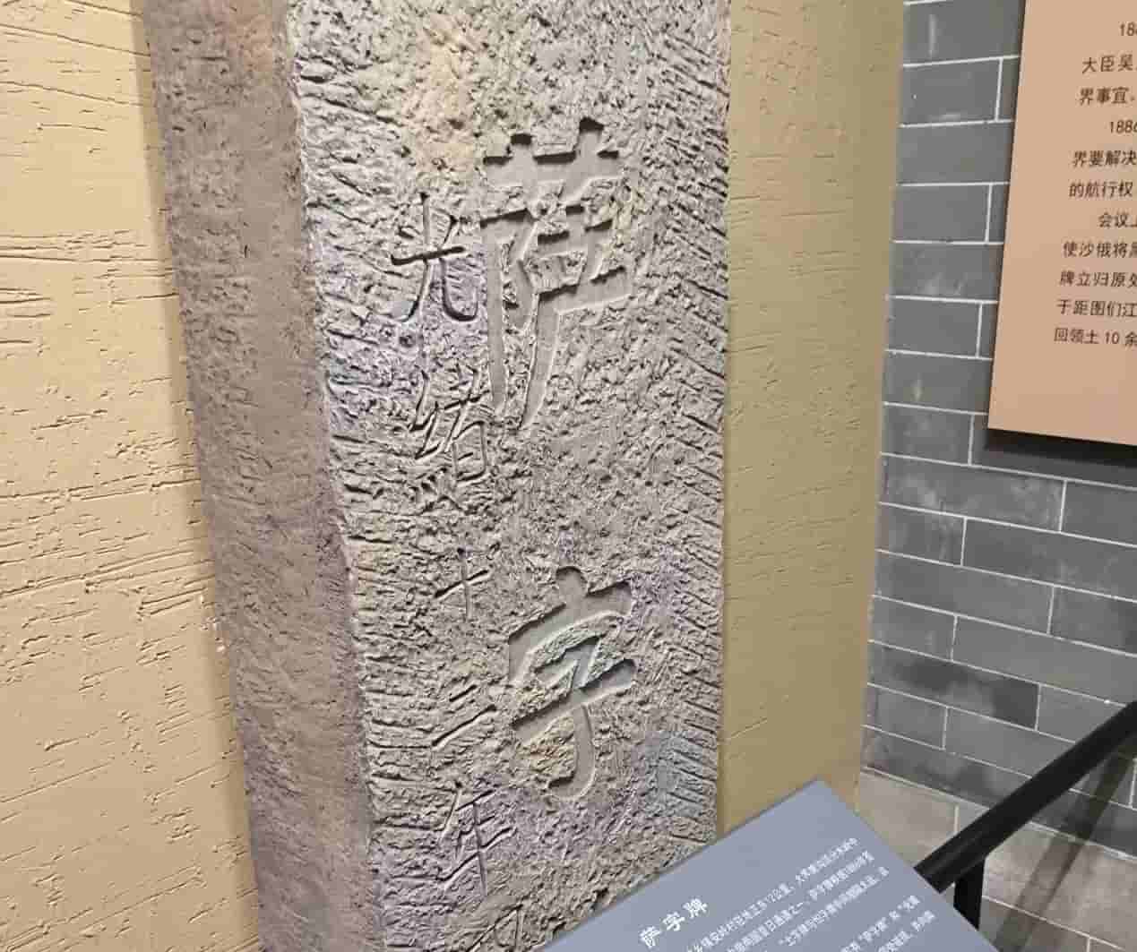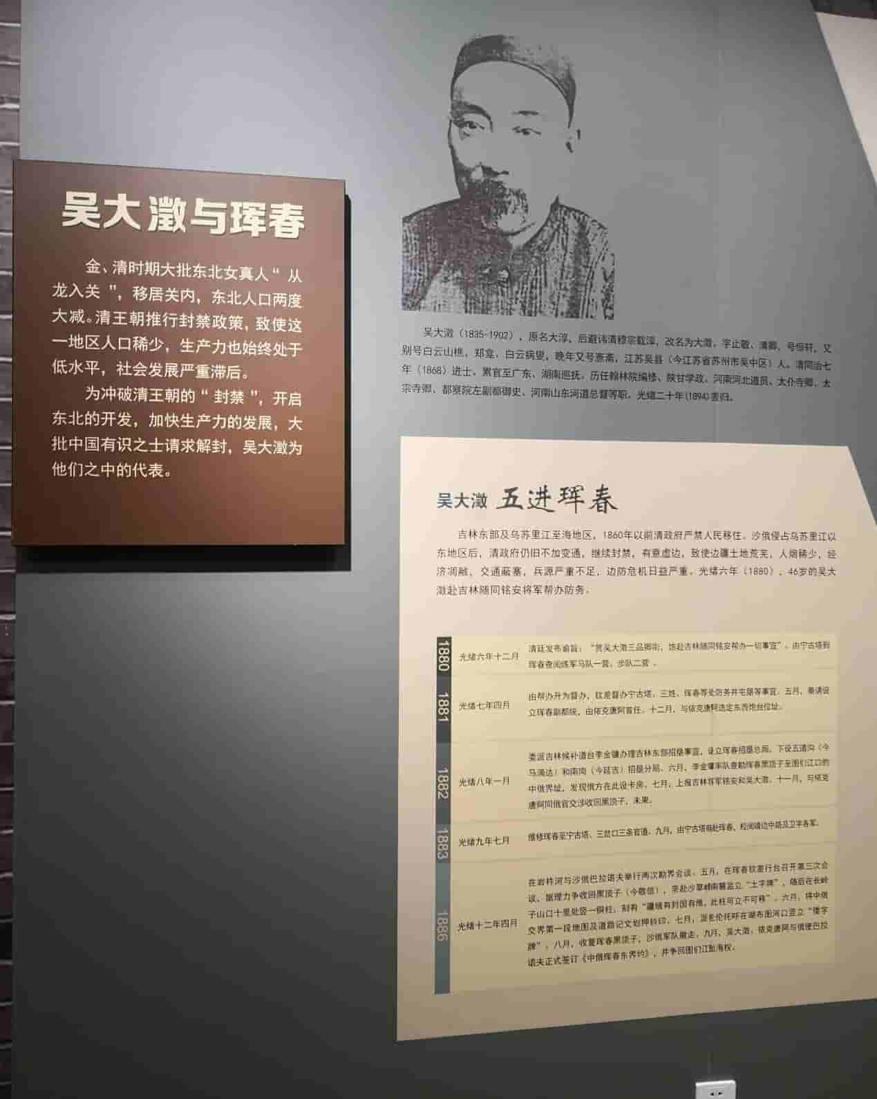 展厅内详细介绍了吴大澂索回300多平方公里国土及出海口通行权利的全过程。原来土字牌的"土"字来自俄文字母"T”,而土字牌景点处游人是看不到碑背后的字母T。这种以一国字母为标志命名碑号的做法明显也是一种霸凌,无奈遇到腐朽若软弱的晚清政府,一切皆成现实。按《北京条约》规定,割让的40多万平方公里的边境上应设20块碑,经吴大澂等勘界视察发现立了8块,即Е(耶)、И(伊)、К(喀)、Л(拉)、Н(那、О(倭)、П(帕)和Т(土),而且多有侵占现象。除将土字牌归位外,吴大澂又增设了萨字牌、啦字牌等碑,为防止俄国人偷鸡摸狗,在珲春一线又加增了15个小界桩为记号,确保国土安全。