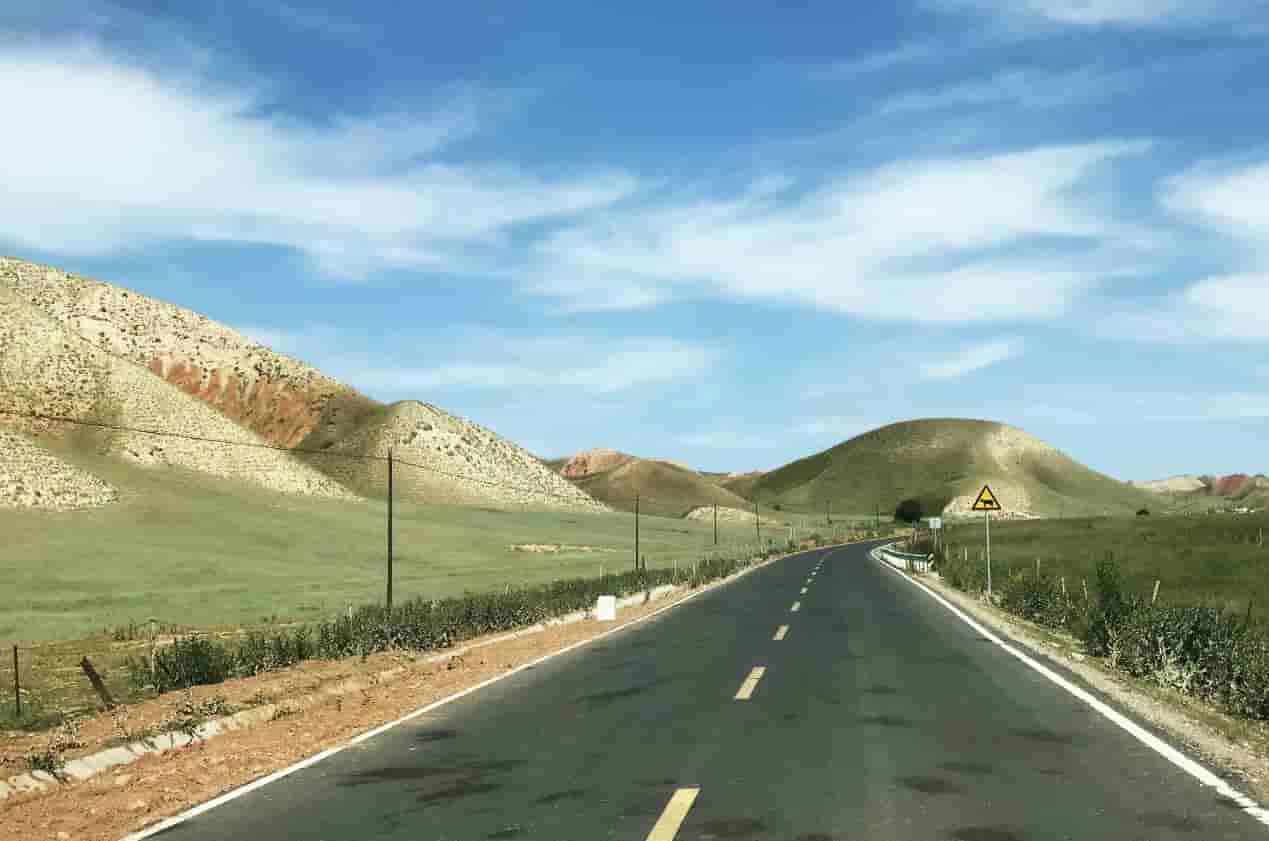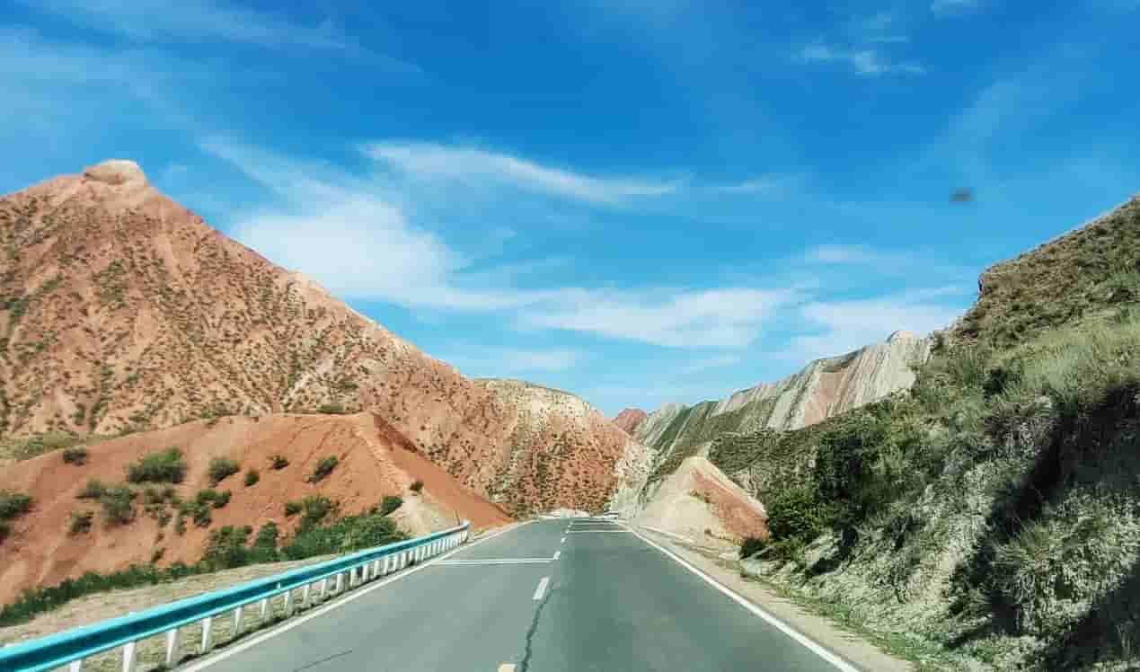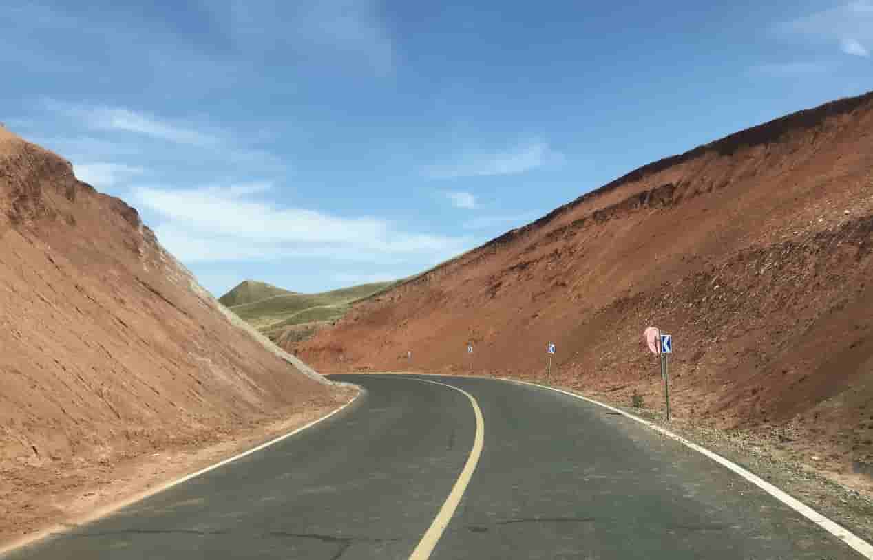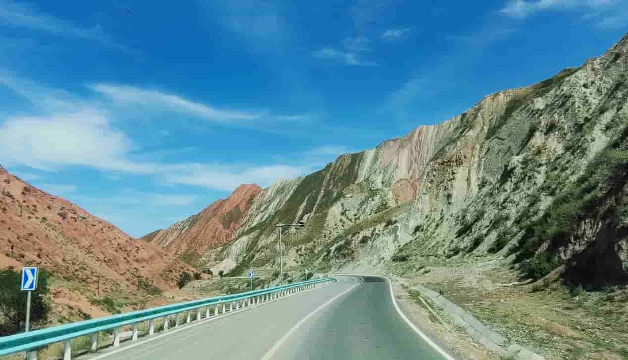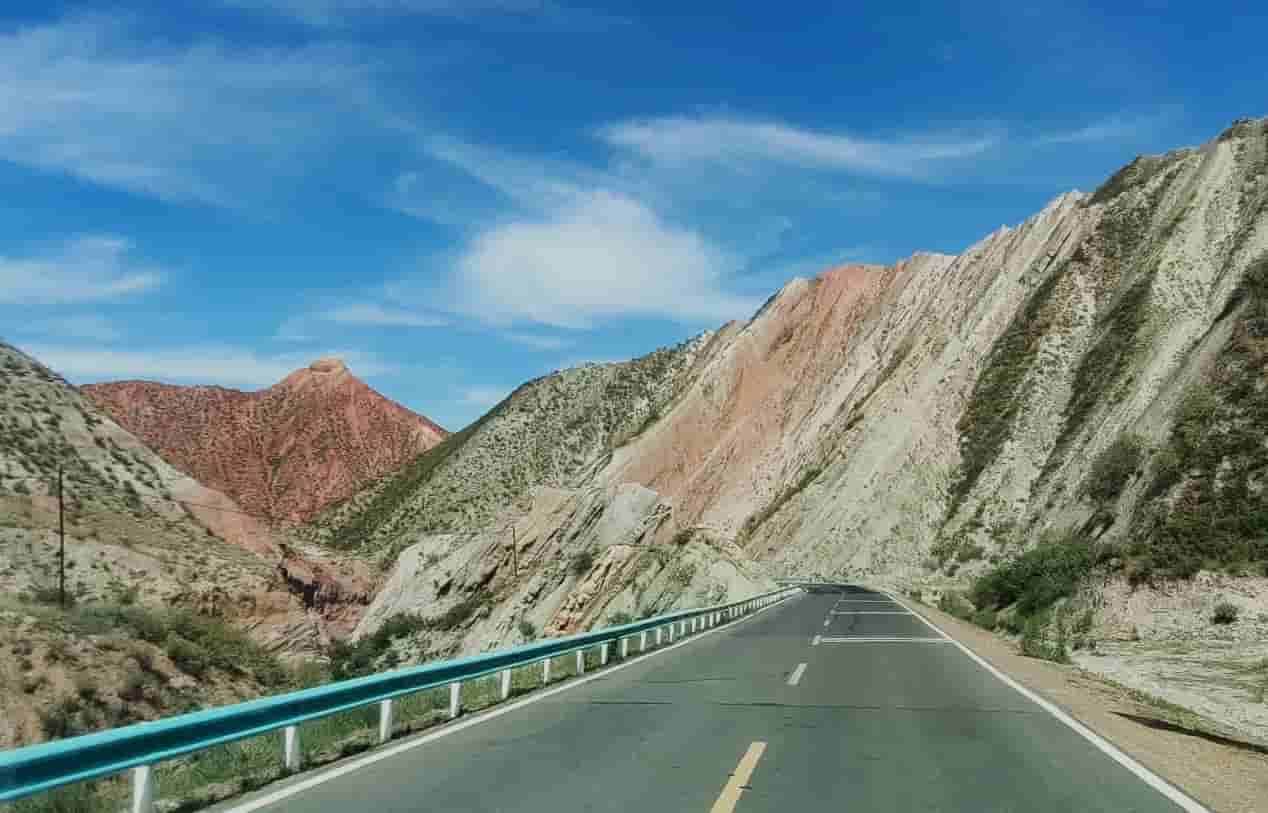 天山山脉南北平均宽约300 公里,行驶在101国道上,山外有山,峰峦叠嶂,不同的山形地貌和色彩不断变换,犹如连绵不断的画卷。道路也随之时而爬升,时而下降,也不乏急弯和盘山路,但相比独库公路和伊昭公路,惊险度平大为降低。当年简易铺装的战备公路现已是柏油路面的旅游公路,轿车也能轻松行驶。只有遇见横行路中的牛群、羊群需要耐心等待,它们没有让路的习惯。