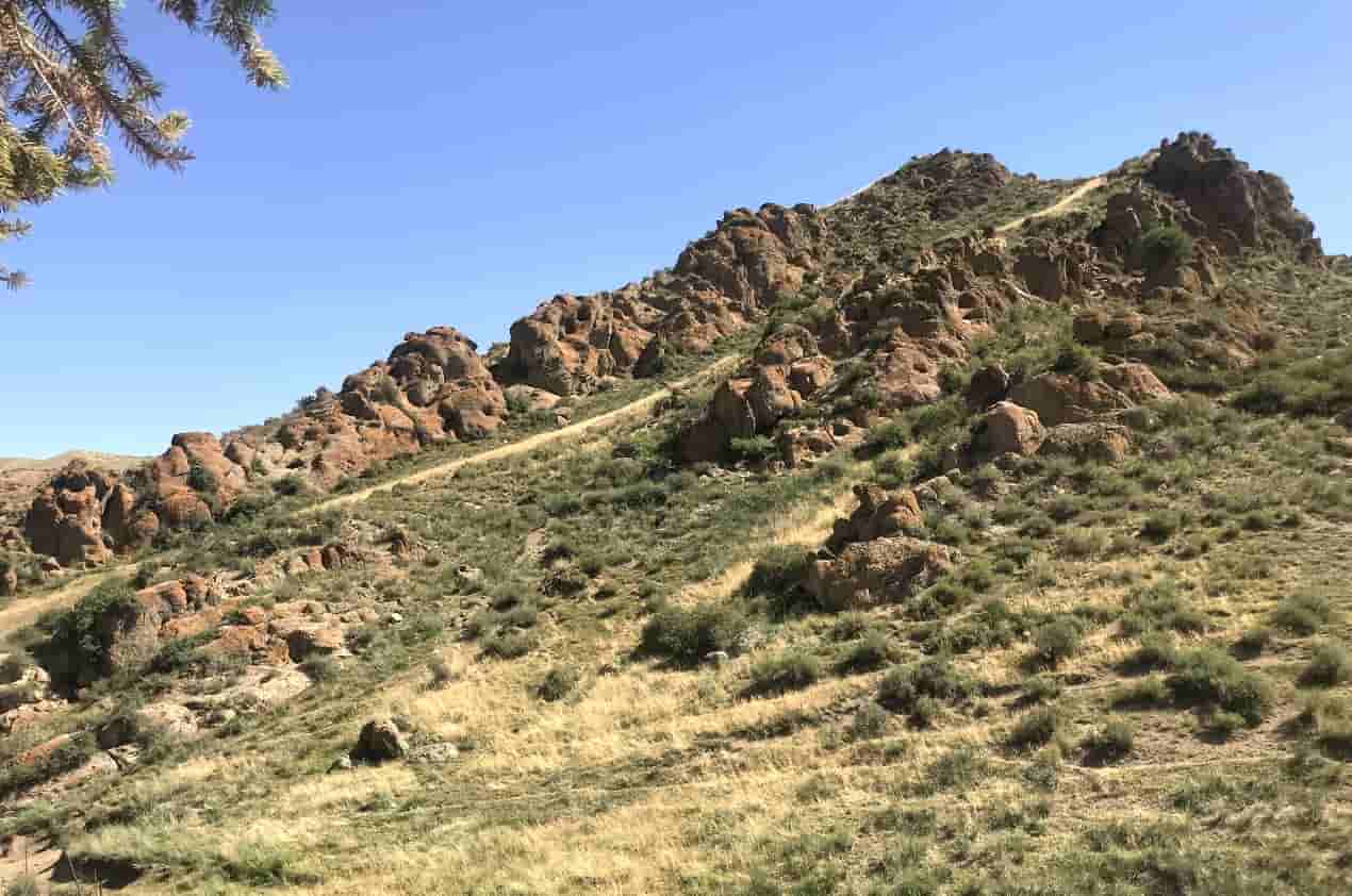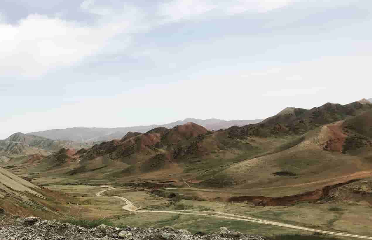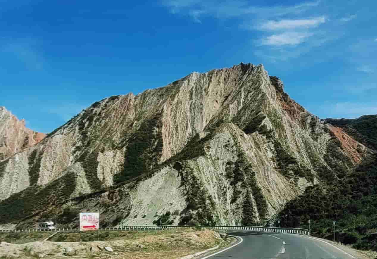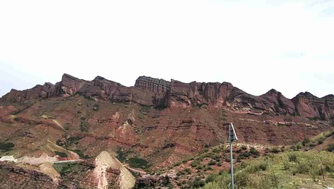 离开肯斯瓦特,盘旋在山清水秀的天山山脉终,沿途经过伟人山景点,远望山体轮廓很像伟人头枕青山仰卧,说是对面有斯大林嘴叼烟斗山形,踅摸了半天看不出来。继续向前是锦绣河山,介绍说这是形成于侏罗纪的砂岩砾岩结构,因地质作用形成了长一百多米的单斜峰丛,与底部连绵的岩丘一起,构成了锦绣山河的丹霞地貌。