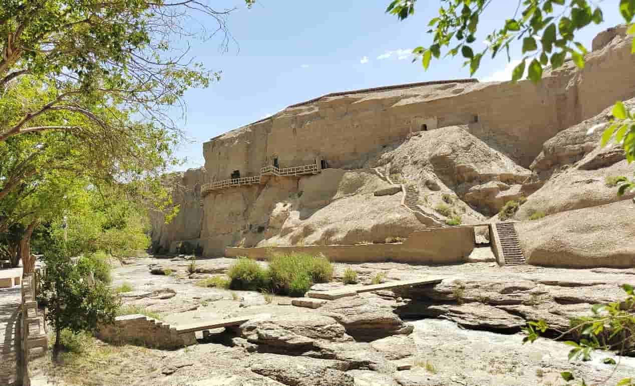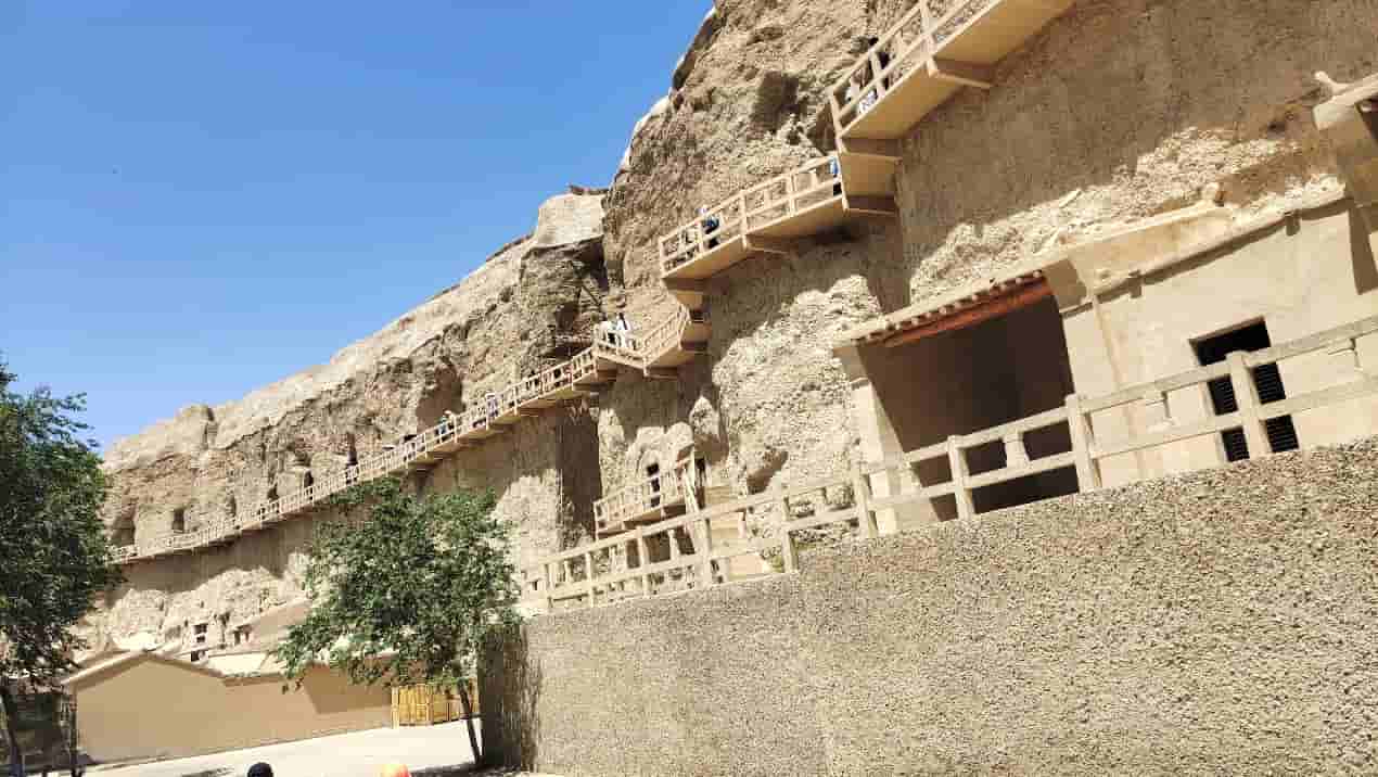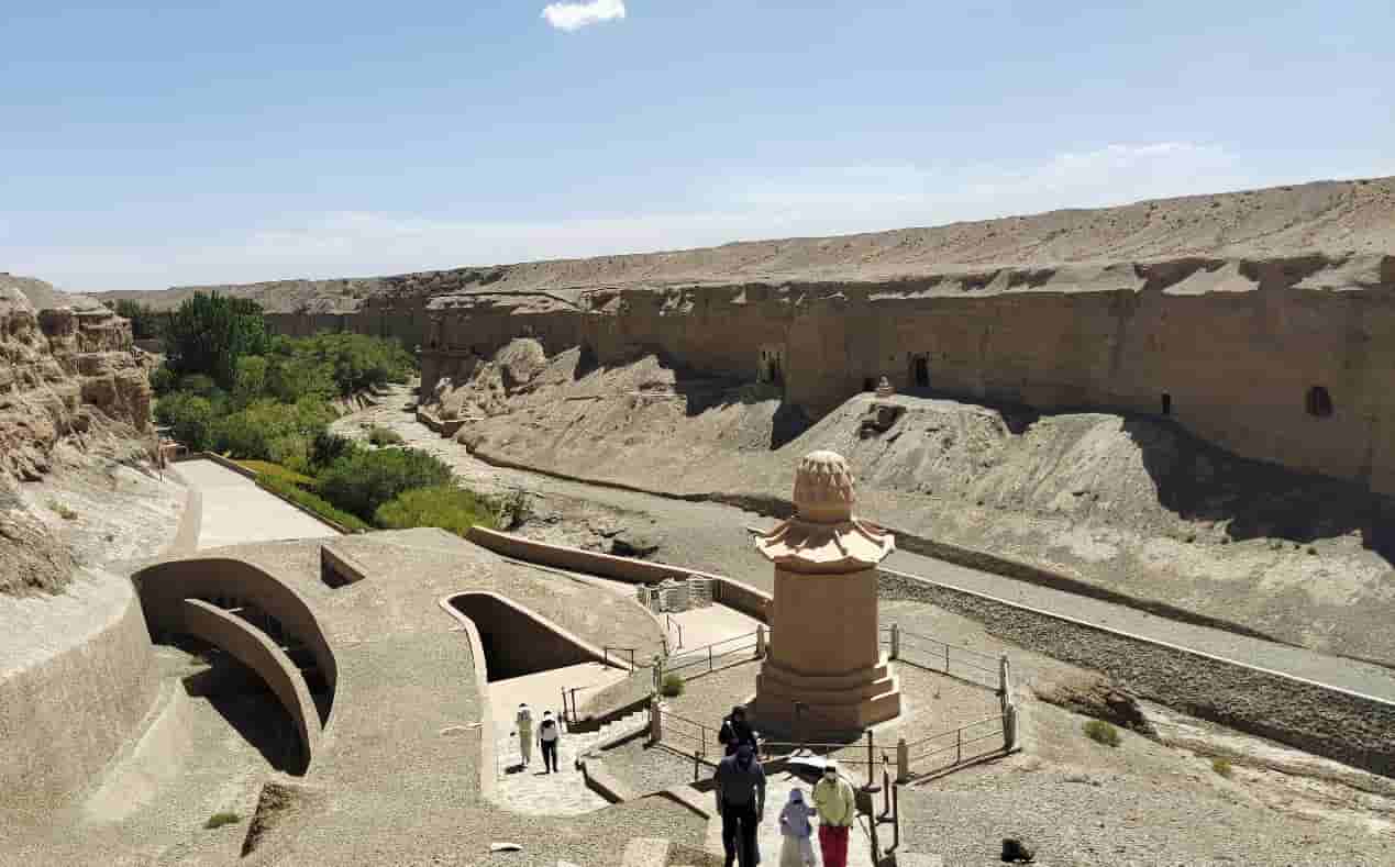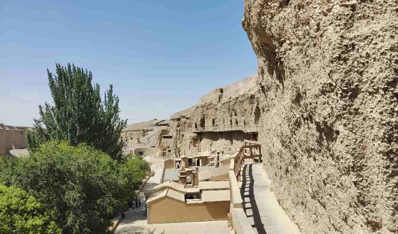 距离蘑菇台不远的榆林石窟始建于北魏,榆林窟原属敦煌郡管辖,同属敦煌艺术,是莫高窟的姊妹窟。不同于莫高窟建在山间断崖上,榆林石窟开凿于榆林河东、西两岸的悬崖峭壁上,石窟也因此得名。景区共有石窟40多个,西岸石窟暂不开放,东岸凭票在管理人员的带领下可以参观4个窟。60岁以上半价,70岁或凭退役证免票。