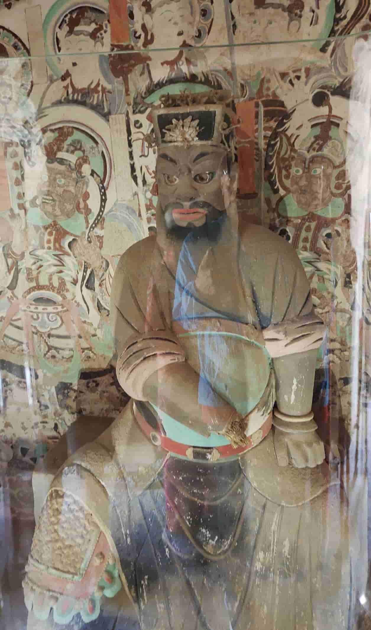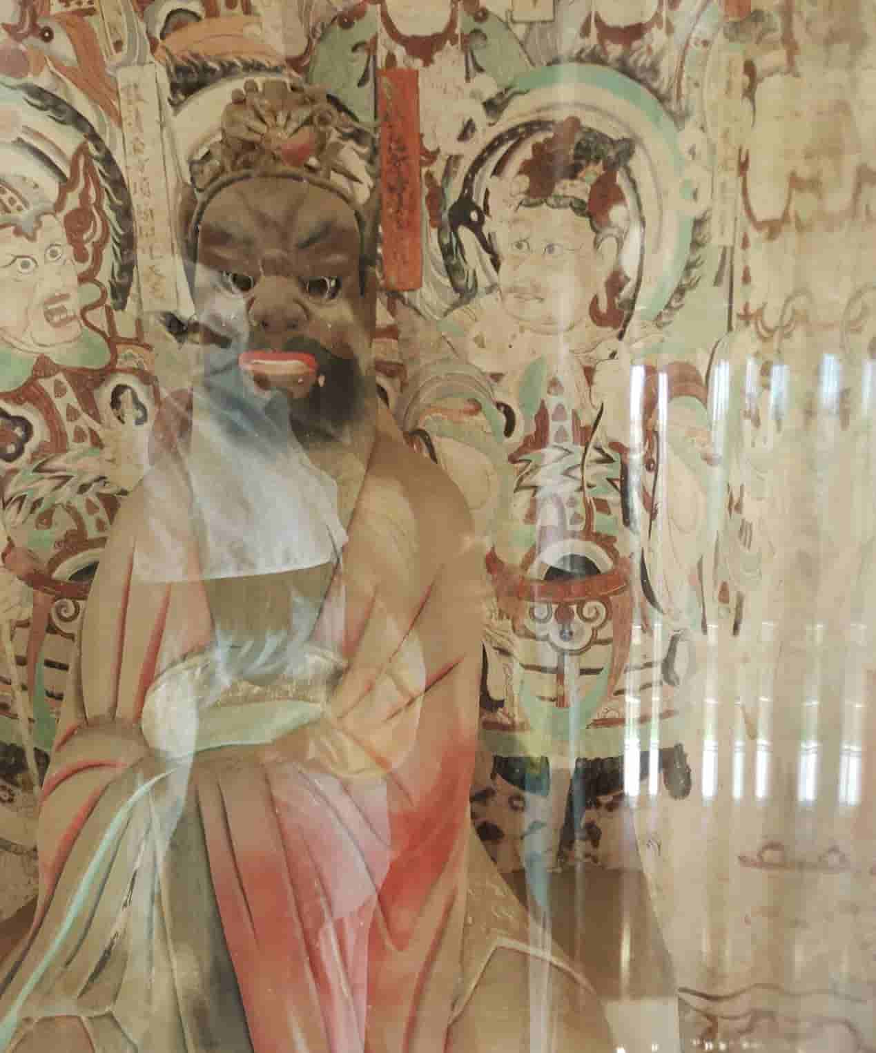 榆林窟以壁画精湛取胜,现存5000多平方米壁画中,有多幅旷世精品,补充了莫高窟壁画内容的不足,对外开放的几个窟已经令人叹为观止,若要看享誉世界的珍品壁画则需单独购买"特窟"门票,每窟200元,估计除了研究人员,只有权贵们可以享受。拍了几张刚进石窟玻璃柜中的壁画留念,后来听说这里也禁止拍照。